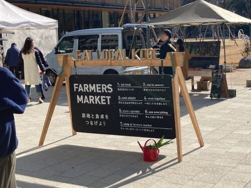 EAT LOCAL KOBEを紹介します。一般社団法人KOBE FARMERS MARKET(以下KFM)が企画・運営している朝市を中心にした活動です。毎週土曜日の10時から13時にかけてFARMERS MARKETが東遊園地をベースにして各地にキャラバンが行われています。1月25日には磯上公園…
