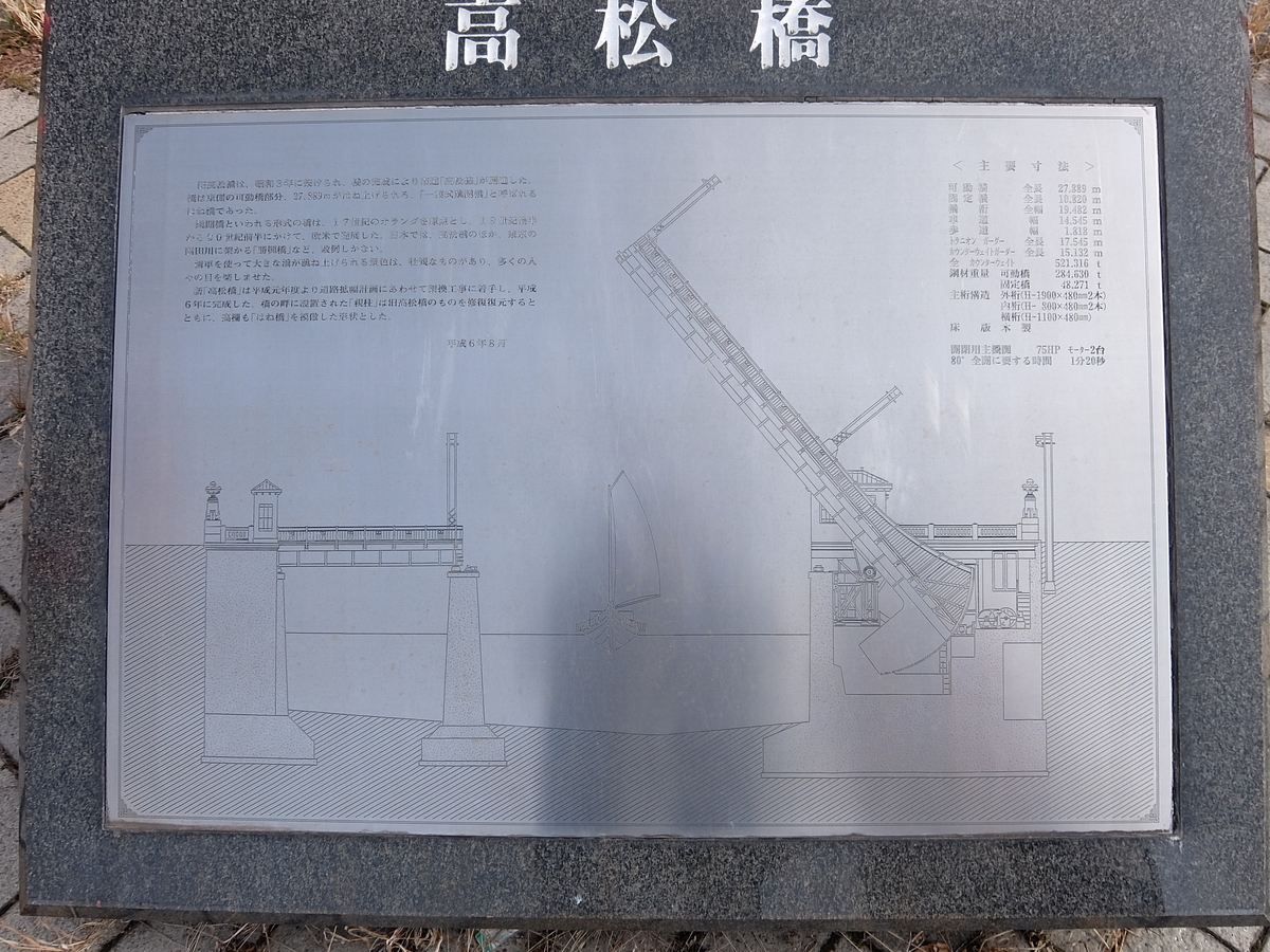 ちなみに、この高松橋は昔は跳ね上げ橋だったようだ。帆船も多かったんだろうか。1日に何回ぐらい跳ね上げてたんだろうか。その頃の光景を見てみたいものだ。