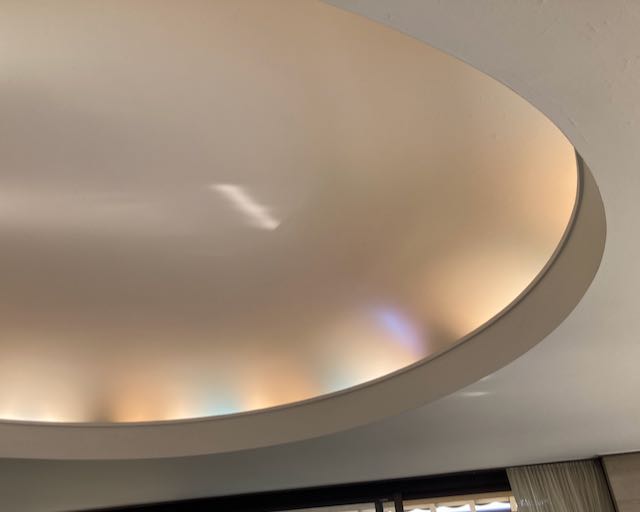 天井の間接照明も当時のままで、電球の色は虹色に調整され照明されています。