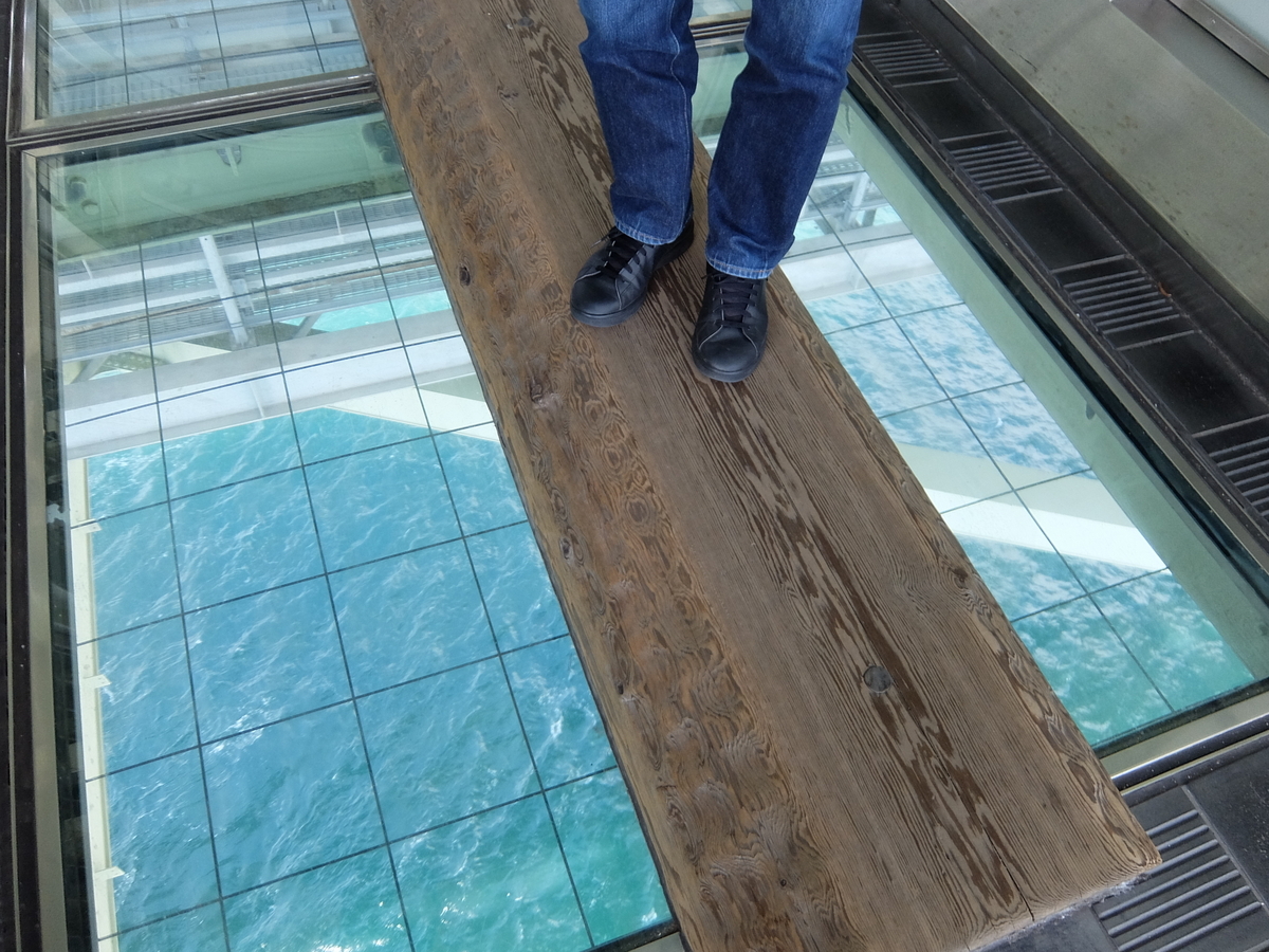 見学通路の底が一部アクリルボードになっているところがある。写真では高さが全く伝わりにくいのだが、実際は怖さで足がすくむ。