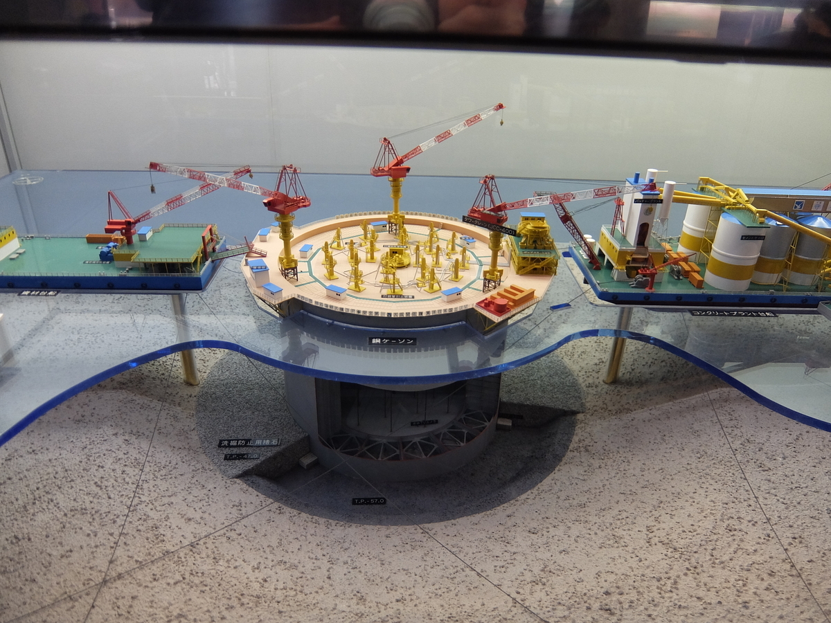 まずは主塔。海上に東京タワーが2つ建っているのと同じようなもの。海の中にその土台を置きに行くわけ。甲子園球場のグラウンドの広さぐらいある。これを考えた人、実行した人、すごいです。