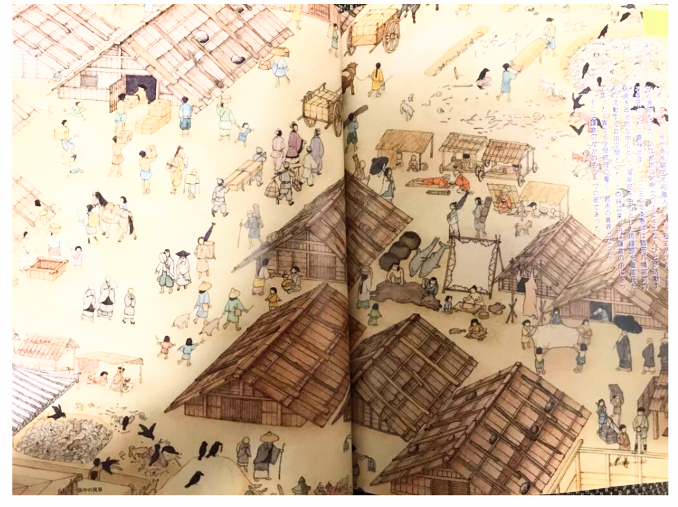 この絵に書かれている家々が、すべて方形竪穴式住居ということになります。*4